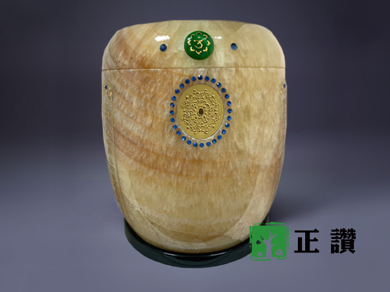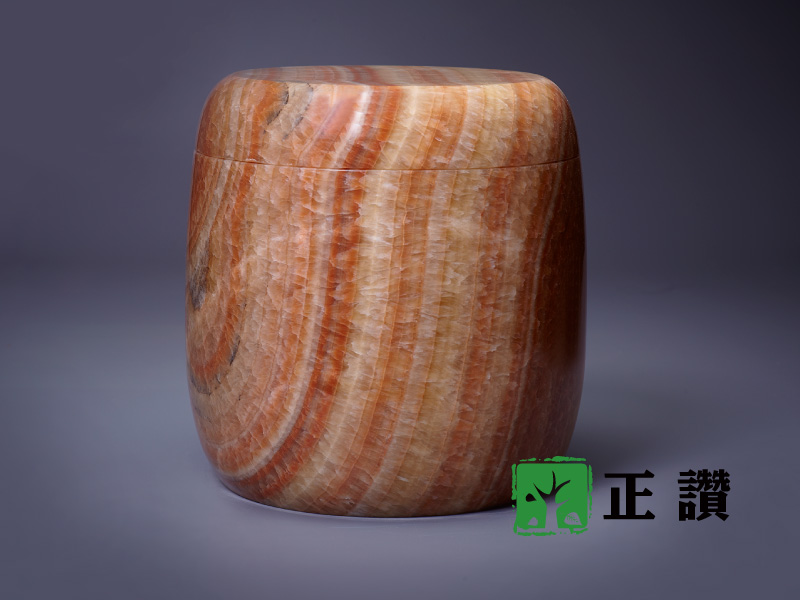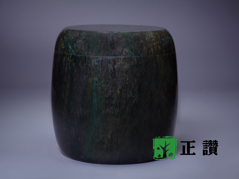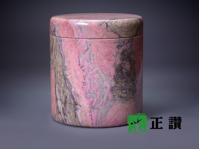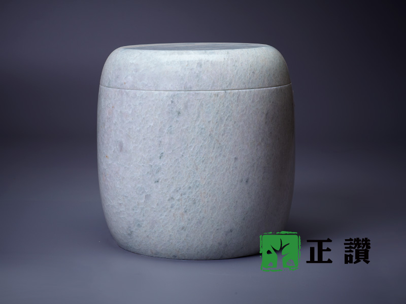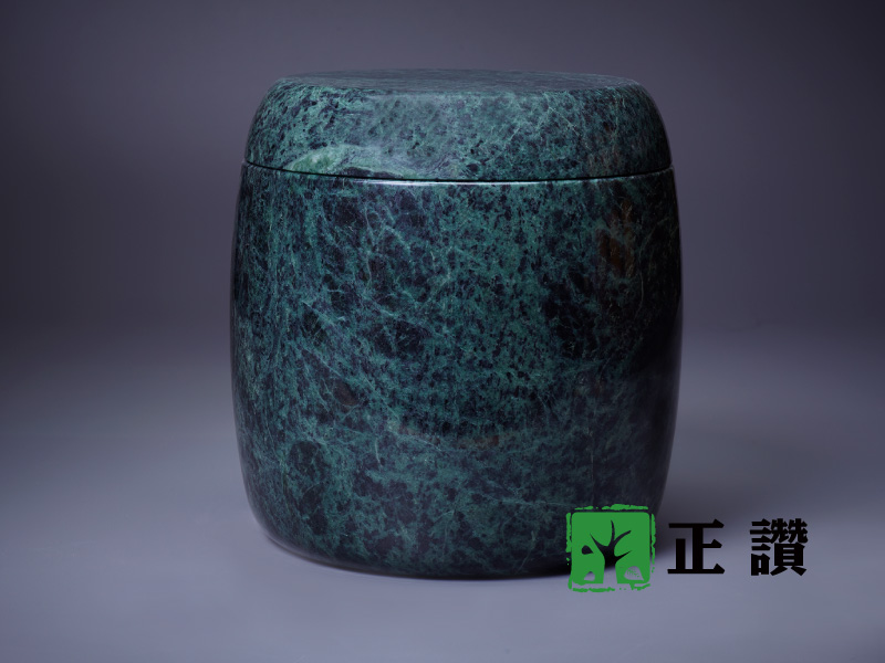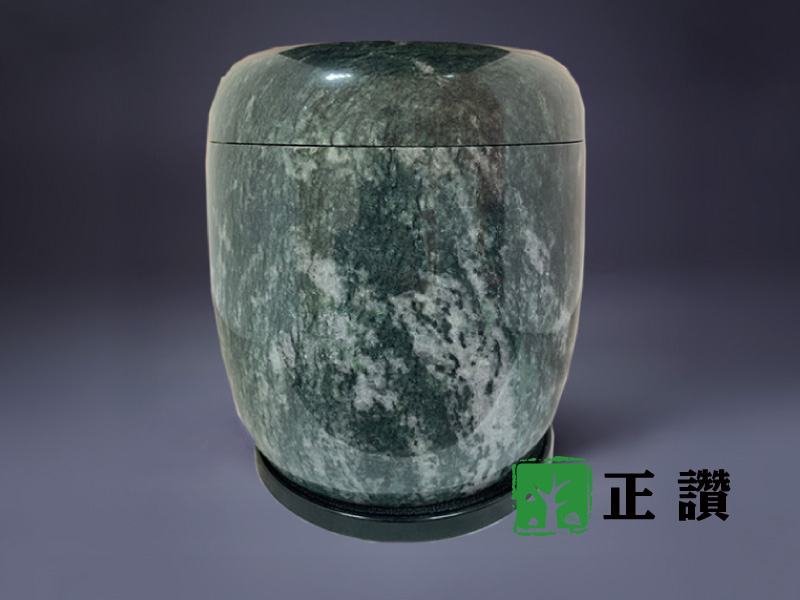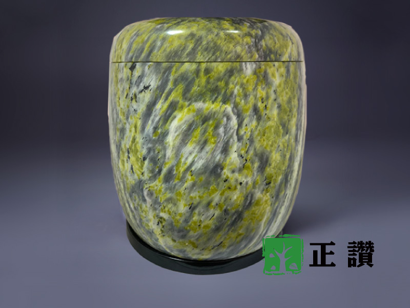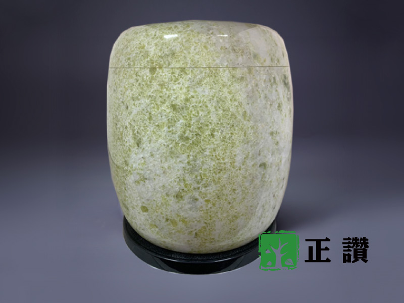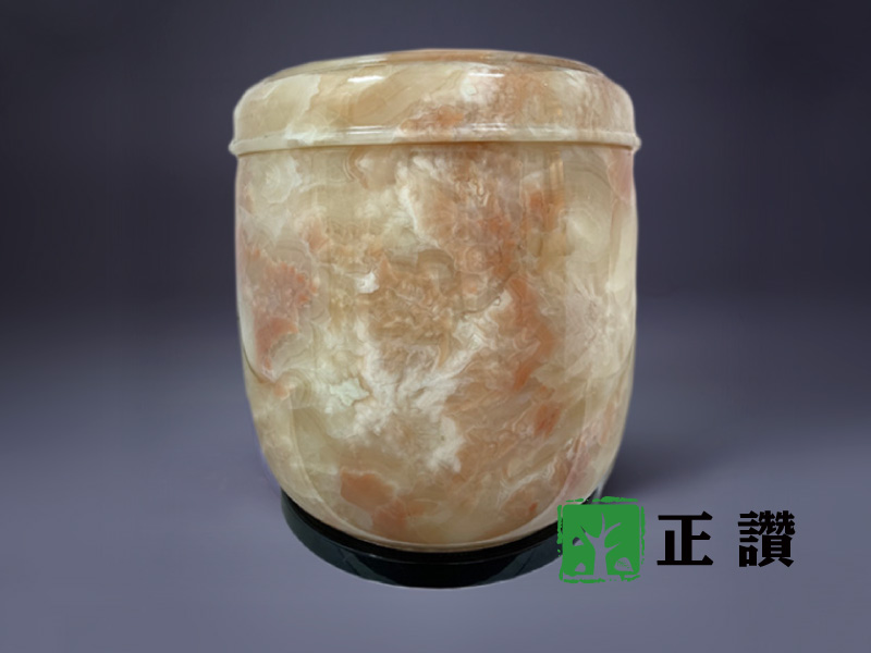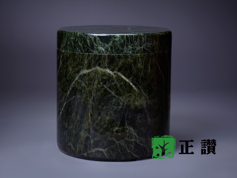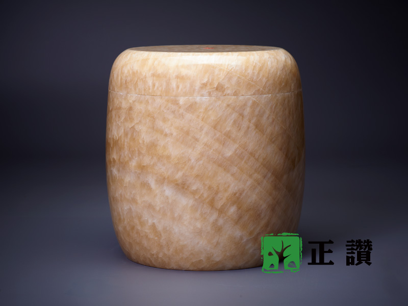 天然玉石,整石挖空不拚接,表面光滑平整,身蓋內扣設計使其密合,質感細膩,可防水防潮,長久保存